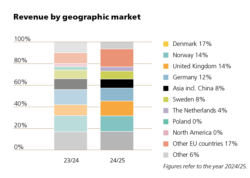 The customers include shipyards, railways, power distribution and the mechanical industry. Manufacturers of hearing aids and wind turbines are also important customer segments.