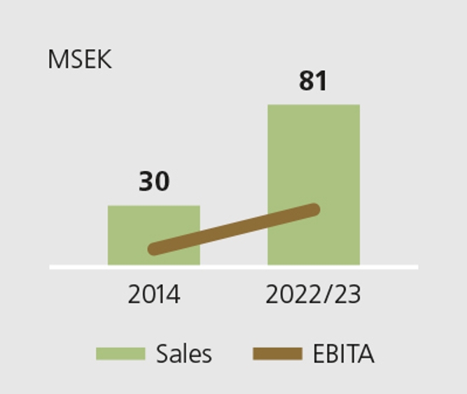 In an otherwise conservative industry, there is an opportunity to increase accessibility and exposure through digital marketing, and in 2022 a special investment was made in this area. With the help of the Lagercrantz Growth Fund, Precimeter has been able to develop new products in the form of sensors that have recently been put into production. New electromagnetic pumps for the chemical industry and high-tech applications are also planned during the year. In recent years, the company has moved to new premises in better locations in Sweden and Germany, which has made it easier to attract employees with the right skills. Today, Precimeter is in a growth phase and has doubled its revenue, completely organically. The goal to generate annual revenue of MSEK 100, which was set internally a few years ago, is now within reach.
