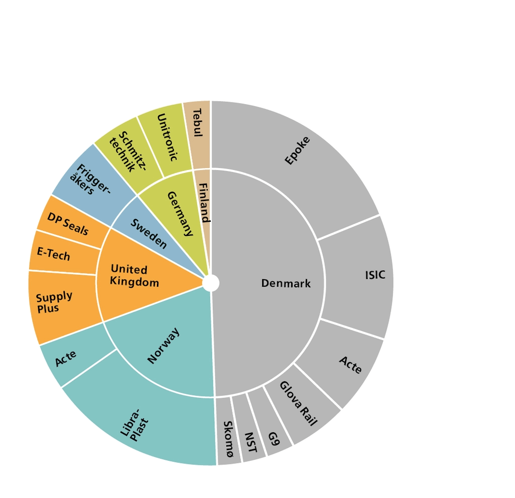 The International division prioritises acquisitions of niche product companies but shall also grow organically. In recent years, the division has also acquired companies with similar products or customer groups. One example is the division’s cluster of product companies focused on the marine industry consisting of Denmark-based ISIC and AC Antennas, the Norwegian company Libra and Tebul in Finland. Another important cluster is Schmitztechnik and DP Seals, which both offer special components in sealing technology for industrial customers.