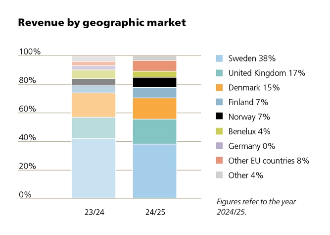 Since June 2022, the Group's largest company, Danish PcP Corporation, is part of the division. The company is a leading northern European manufacturer of innovative safety products based on gratings and other niche steel products. The company operates in 30 markets and has wholly-owned subsidiaries in Norway, Sweden, the Netherlands, Belgium, Germany and the United Kingdom. PcP has a turnover of nearly 600 MSEK with good profitability.