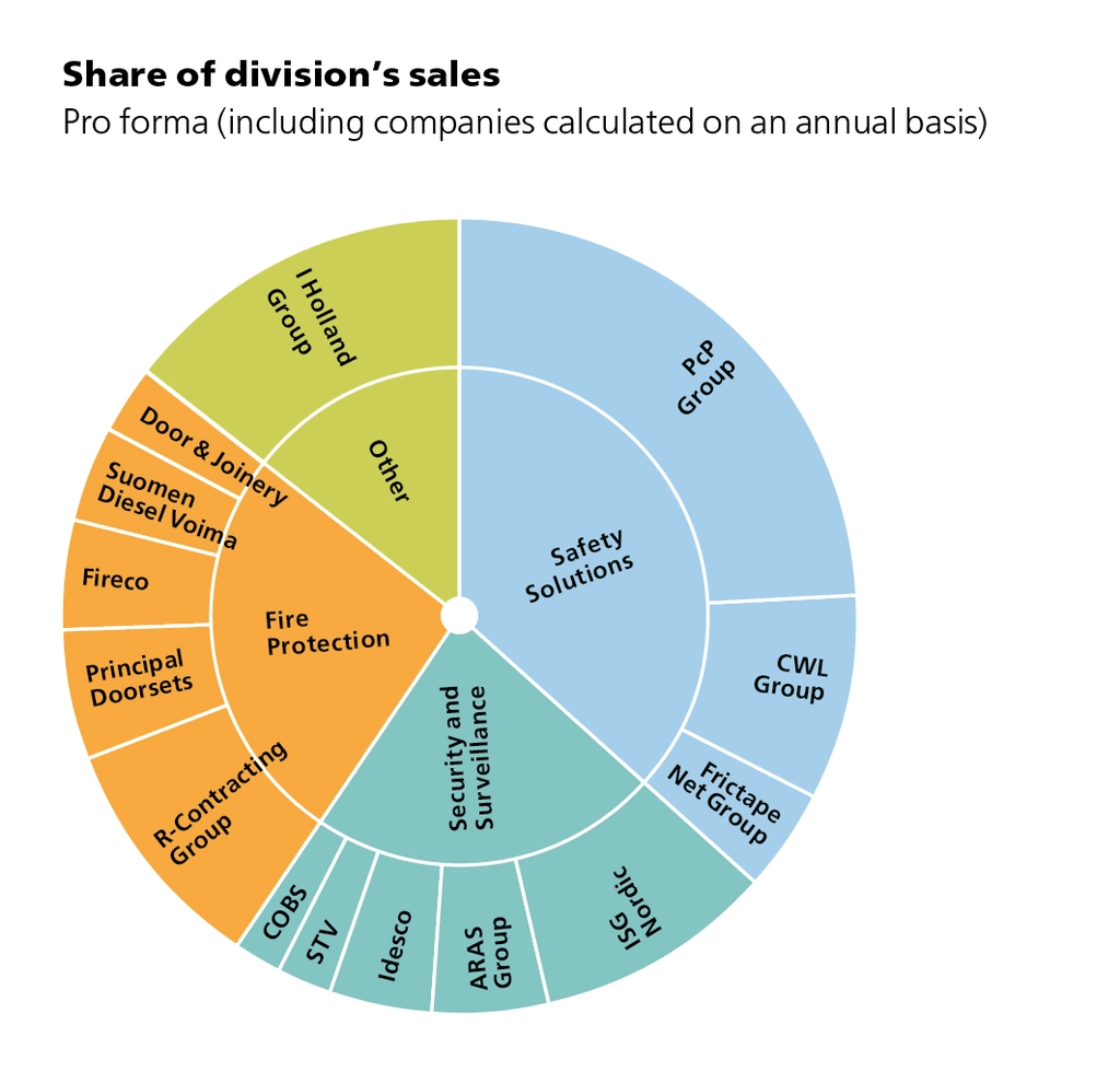 The customer segment includes public authorities and specific critical societal functions, companies, logistics, nursing and healthcare, building and construction as well as offshore. The business is divided into three focus areas: Protection and safety & security solutions, Electronic security and surveillance, and Fire safety. Key technology areas are active and passive fire protection, mechanical protection such as locking devices, fences and security doors, safety & security solutions that prevent accidents and technical security systems for properties and infrastructure where digital systems and sensors are used to protect businesses and individuals.