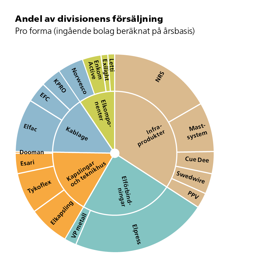 Divisionen består av 18 bolag med stark närvaro i Nordeuropa och en växande exportverksamhet. Trender som elektrifiering, digitalisering och urbanisering, liksom behovet av driftsäker kommunikation och skyddade system, är drivkrafter som säkerställer en växande marknad och efterfrågan. Många av bolagen är ledande inom sina nischer och visar stabil tillväxt, med egenutvecklade produkter och lösningar som ofta har lång livslängd och en hög teknisk prestanda. Kunderna finns inom industri, eldistribution, transmission, förnybar energi, transportinfrastruktur, batteri- och laddteknik samt kommunikationsnät som fiber och 5G.