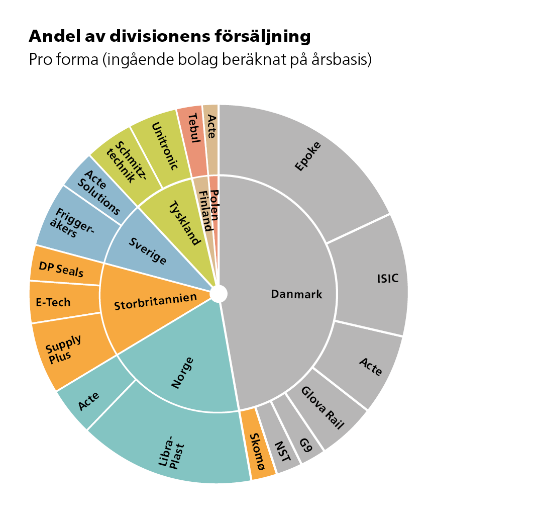 Danska bolaget NST är ledande inom el- och belysningsprodukter för bygg- och anläggningsprojekt. Skomø är verksamma inom utveckling och produktion av grafiskt kundanpassat profilmaterial och Glova Rail är en ledande leverantör av vakuumtoaletter för järnvägsfordon. Engelska E-tech Components är specialister inom kablagetillbehör för krävande applikationer. Dessa verksamheter är likt övriga inom divisionen hårt nischade med stark ställning inom sina respektive marknader. Epoke A/S, är en ledande tillverkare av utrustning för vinterväghållning med säte på södra Jylland i Danmark. Epoke är en pionjär inom utrustning för vinterväghållning och de är kända för sina tekniskt avancerade och miljömässigt hållbara lösningar.