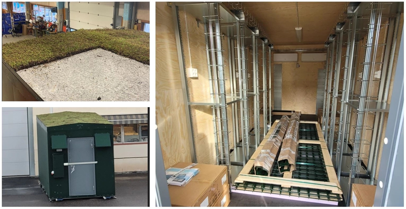 En extra rolig detalj på dessa Teknikhus som går till Tyskland är att de förses med sedumtak (gräs) samt en spalje utefter sidorna så att klätterväxter ska kunna växa, allt för att smälta in i den miljö där de ska placeras.