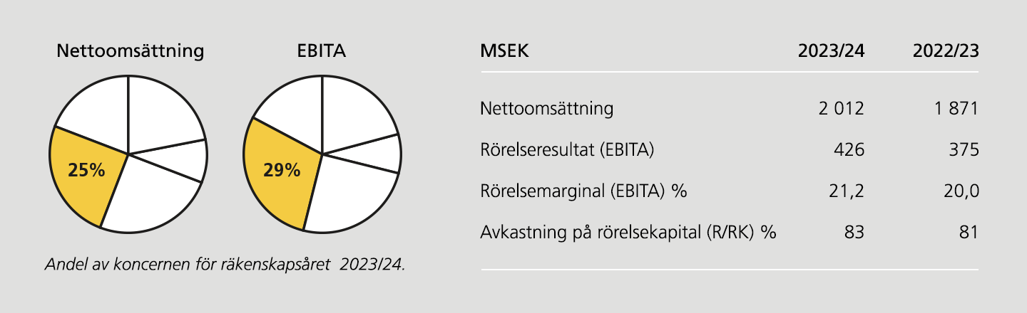 Framåt är målet att fortsätta växa i linje med koncernens ambitioner och att fördubbla divisionens EBITA inom fem år. Målsättningen är att genomföra 2–4 förvärv per år, inklusive mindre tilläggsförvärv.